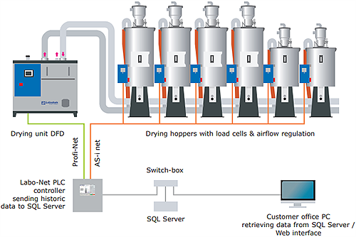 - Full tracking record of processed drying data for material- and quality management